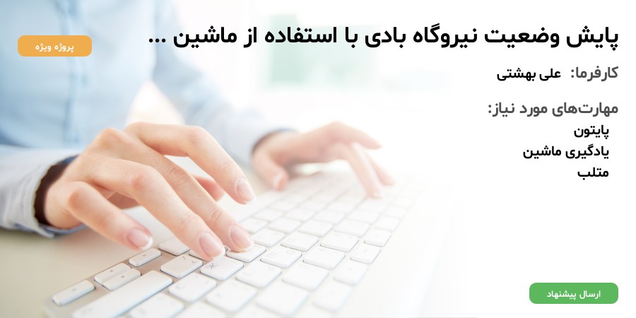 کدهای مشابه در گیتهاب موجود است. با استفاده از داده های اسکادا نیروگاه بادی و یا داده های مشابه، داشبورد مانیتورینگ ایجاد شده و پایش وضعیت با استفاده از یادگیری ماشین صورت پذیرد. دسته بندی داده ها نیز نیاز خواهد بود.