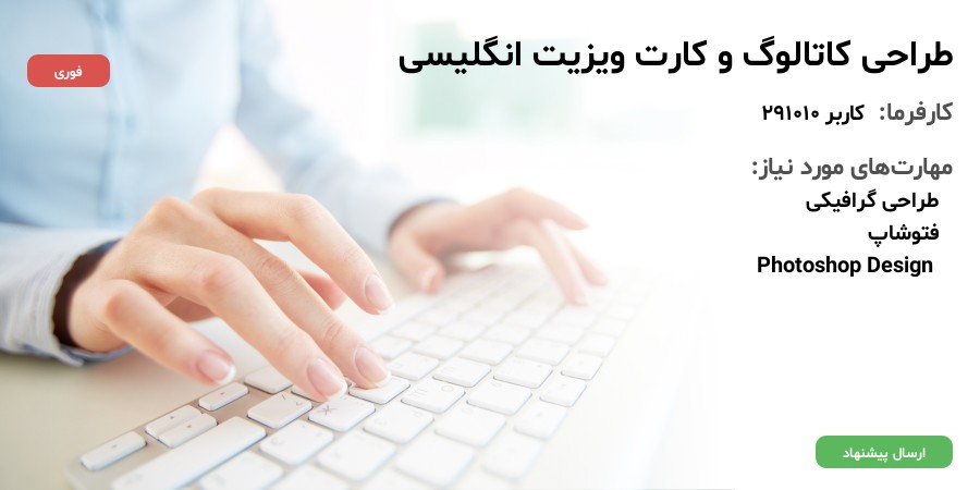 طراحی یک کاتالوگ به صورت کتابچه و به زبان انگلیسی و یک کارت ویزیت مورد نظر است.