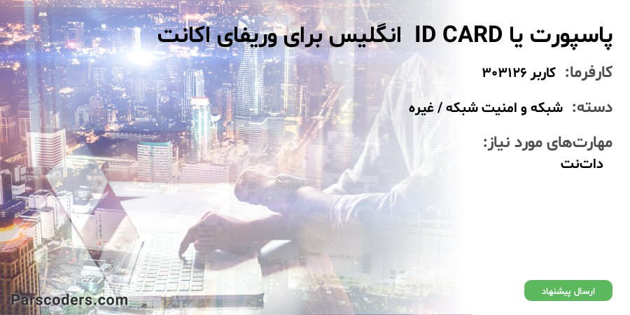 اگه کسی میتونه تصویر جهت ارسال همچین مدارکی رو تهیه کنه فقط به شرط وریفای شدن اکانت مبلغ رو آزاد میکنم،یعنی سر قیمت وقتی به توافق رسیدیم من گرو گذاری رو انجام میدم.مدرک شناسایی که شما در اختیارم میزارین رو واسه اون سایت ارسال میکنم.وقتی تاییدیه مدرک رو گرفتم و حساب وریفای شد مبلغی که توی پارسکدرز گرو گذاشتم رو آزاد میکنم