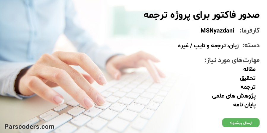 در صورتی که یک شرکت ثبت شده با کد اقتصادی معتبر، در زمینه ترجمه و یا امور مربوط به فعالیتهای پژوهشی دارید، لطفا پیام دهید. سوالی در مورد امکان صدور فاکتور برای یک مقاله ترجمه شده در ازای پرداخت حق الزحمه، از خدمتتان دارم.