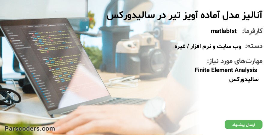 مدلی آماده از یک آویز ساده تیر در سالیدورکس هست که می خوام تحت دو شرط مختلف آنالیز بشه و ازش خروجی توزیع تنش ون میسز گرفته بشه و جاهای بحرانی مشخص بشه و اگر جایی از اون از نتش تسلیم بیشتر شد، گزارش بشه.