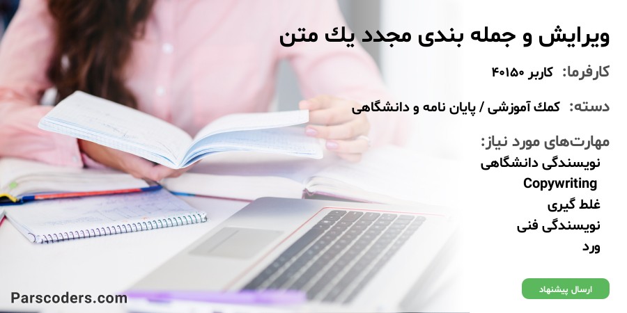 متأسفانه مهلت ارسال پیشنهاد این پروژه به پایان رسیده و پروژه بسته شده است؛ اما فرصتهای متعددی در سایت موجود میباشد.