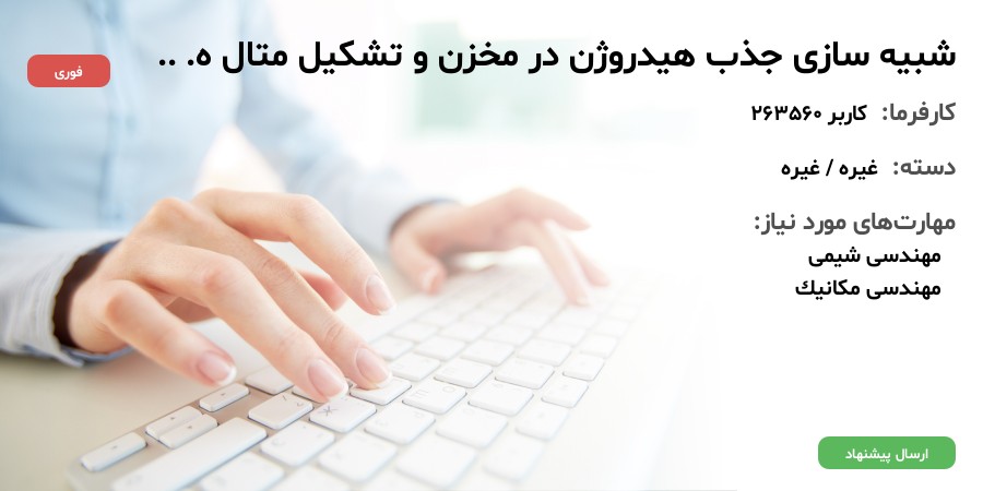 پروژه بنده در زمینه شبیه سازی جذب هیدروژن در مخزن و تشکیل متال هیدرید است. برای انجام این پروژه که توسط نرم افزار فلوئنت انجام میشود نیاز به udf نویسی روابط مقاله است که این udf ها نوشته شده است.در واقع در ابتدا بنده نیاز به ولید کردن مقاله دارم. به کمک مهندسی احتیاج دارم که مقاله رو برای بنده ولید کنن.