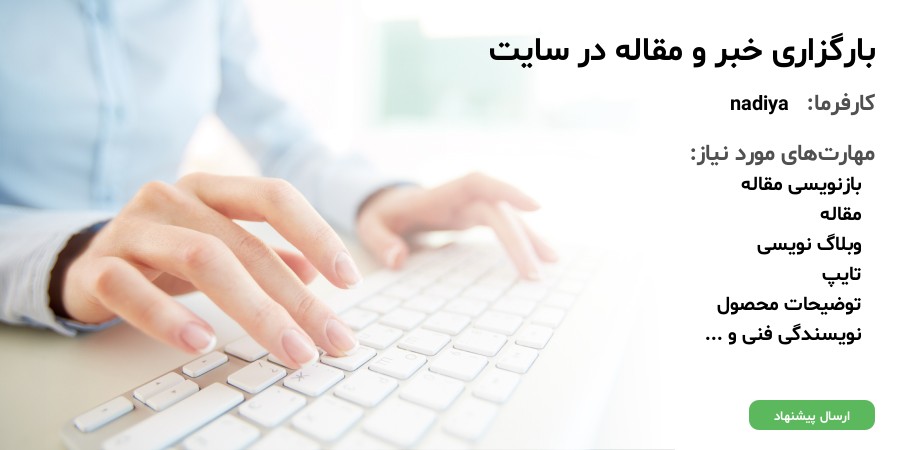 با سلام چند تا وب سايت داريم در زمينه آموزشي و بازاريابي نرم افزار و قصد داريم براي اعضاي آن محتواي توليد کنيم.(خبر ، مقاله ، محتواي آموزشي ،.....) محتواي بايد از مطالب روز و روش هاي جديد در (سر فصل هاي مطالب بعدا ارئه ميشود) عنوان هاي مشخص شده باشد. مي توان مقالات و مطالب مفيد و مرتبط در اينترنت را وارد کرد. لطفا فقط علاقه مندان و دوستاني که توانايي و يا تجربه و يا سابقه توليد محتواي اموزشي براي سايت يا وبلاگ دارند پيشنهاد بدهند. همزمان به روز نگهداري صفحات فيس بوک و تويتر هم بايد انجام پذيرد.