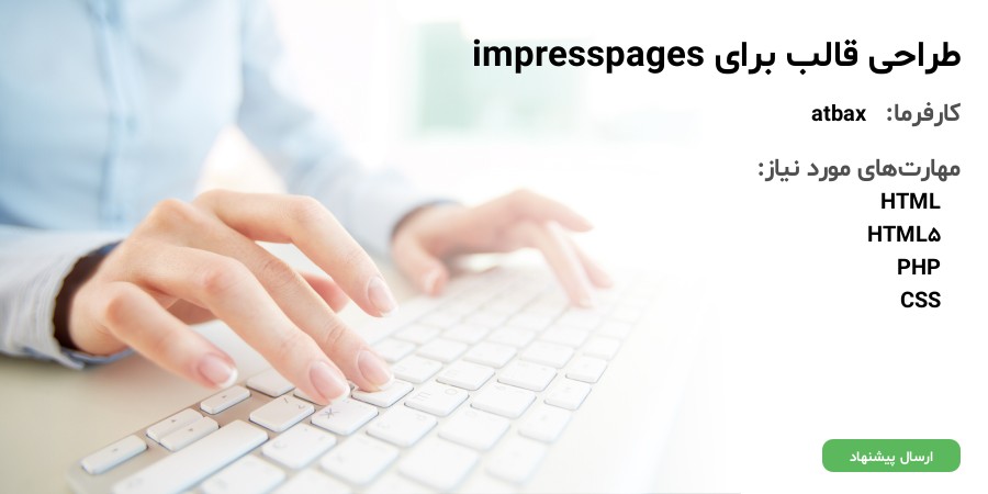 ما به يه طراح نياز داريم ک بتونه هر قالبي رو براي impresspages طراحي کنه و توانمندي بهينه کردن و ريسپانسيو کردن هم داشته باشه