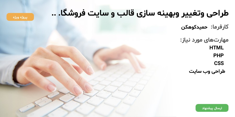 و میخوام قالب سایت (هدر ، فوتر ،سبد خرید و قسمت های حساب کاربری و ثبت نام و فرم کلی ثبت نام در سایت رو دقیقا مشابه دیجی کالا( باشماره موبایل) تغییر بدم.فرانت اند و بک اند.و ظاهر و یکسری از قسمتهای فروشگاه رو تغییر ظاهری بدم.شکل و فرم و چیدمان رو مخصوصا در هدر و فوتر فروشگاه تغییر بدم.یسری ویرایش های نوشتاری در متن و قسمتهای مختلف سایت ک ایراد نگارشی داره و درکل یک بهینه سازی کلی