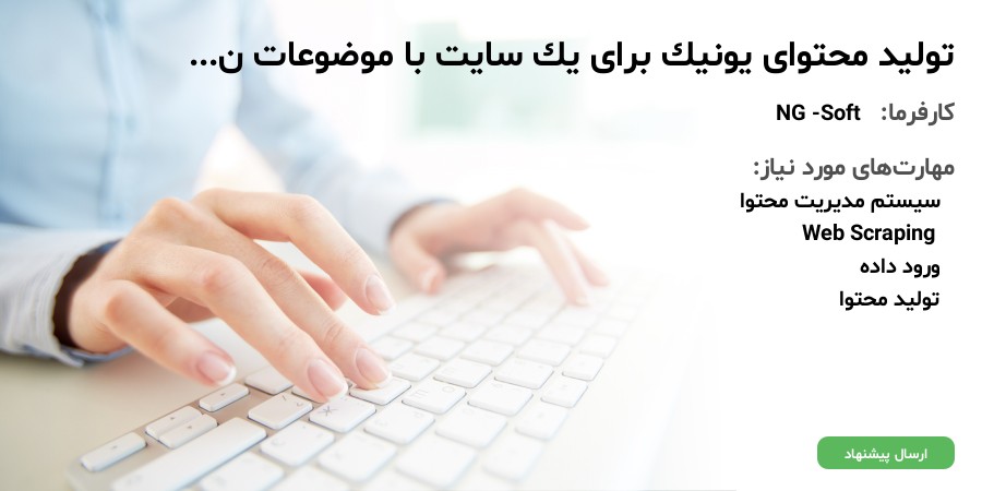 یک سایت با موضوعات نرم افزاری ، برنامه نویسی و الکترونیک داریم و میخوایم براش تعدادی زیادی پست و محتوا تولید بشه. محتوا حتما باید با کیفیت و به هیچ عنوان کپی از جایی نباشه که تو بحث سئو به مشکل بخوریم. در صورت رضایت طرفین این همکاری ادامه دار خواهد بود. لطفا پیشنهاد های خودتونو قرار بدین