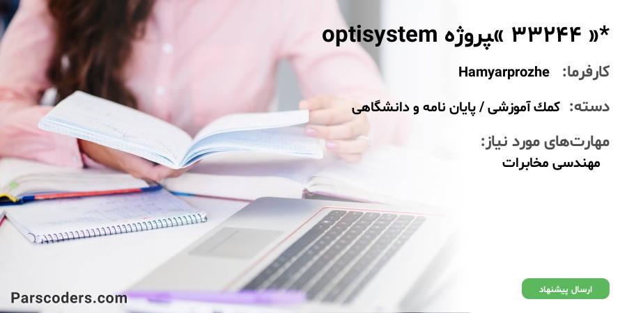 سلام وقت بخیر یک پروژه کوتاه که یک روزه میخواهم انجام شود دارم. با نرم افزار optisystem میخواهم انجام شود کسی را برای optisystem دارید؟ شبیه سازی خیلی ساده. با نرم افزار optisystem.