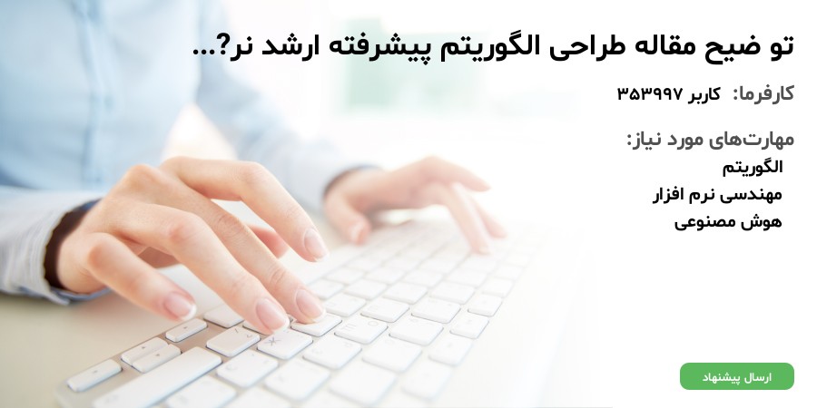 متأسفانه مهلت ارسال پیشنهاد این پروژه به پایان رسیده و پروژه بسته شده است؛ اما فرصتهای متعددی در سایت موجود میباشد.