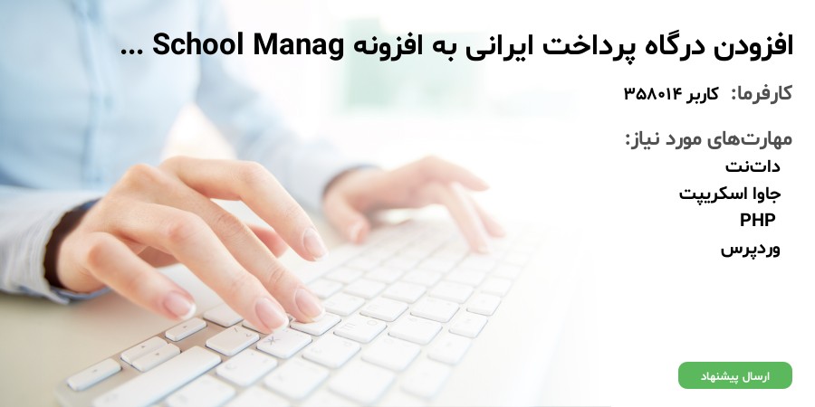 من یک افزونه دارم به نام School Management System کاملا فارسی شده دوتا ایراد داره : 1- درگاه پرداختش پی پال هست و میخوام به یک درگاه ایرانی مثل زرین پال یا پی لاین متصل بشه. 2- ارسال پیامک که اونم سرویس پیامکش خارجیه و میخوام از سرویس های ایرانی استفاده بشه برام خیلی مهمه مخصوصا مورد اول اگه کسی هست انجام بده سه تا هفت روز میخوام تحویل بده . لطف کنید برای هر قسمتش جداگونه هزینه رو اعلام کنید.