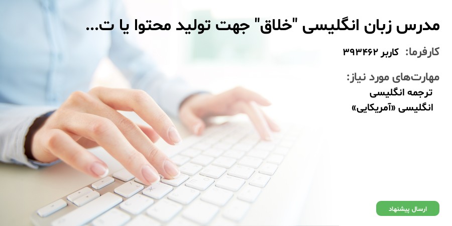 برای یک نرم افزار و اپلیکیشن متفاوت آموزش زبان انگلیسی نیاز به یک مدرس با تسلط نیتیو بر زبان انگلیسی ، خلاق و خوش فکر جهت همکاری جهت تدریس به صورت پروژه ای داریم.