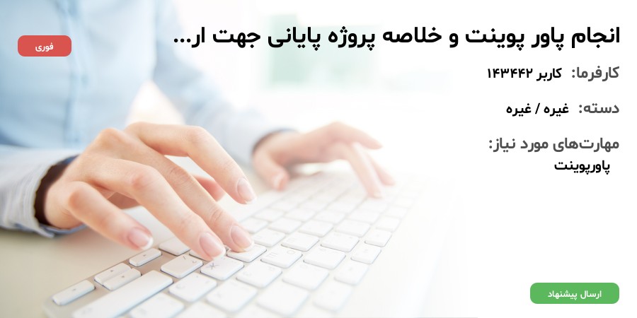 متأسفانه مهلت ارسال پیشنهاد این پروژه به پایان رسیده و پروژه بسته شده است؛ اما فرصتهای متعددی در سایت موجود میباشد.