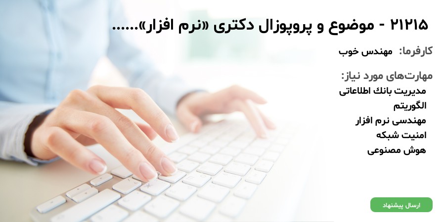 - ابتدا موضوع پیشنهاد دهید، در صورت تایید نگارش پروپوزال در موضوع پیشنهادیتون به شما سپرده خواهد شد