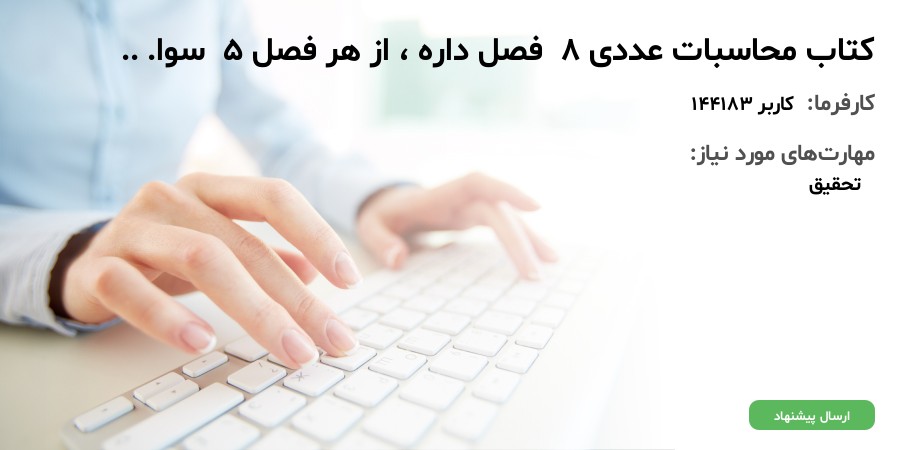 کتاب محاسبات عددی (مولف: مسعود نیکوکار) 8 فصل داره ، از هر فصل 5 سوال می خوام با پاسخ تشریحی.