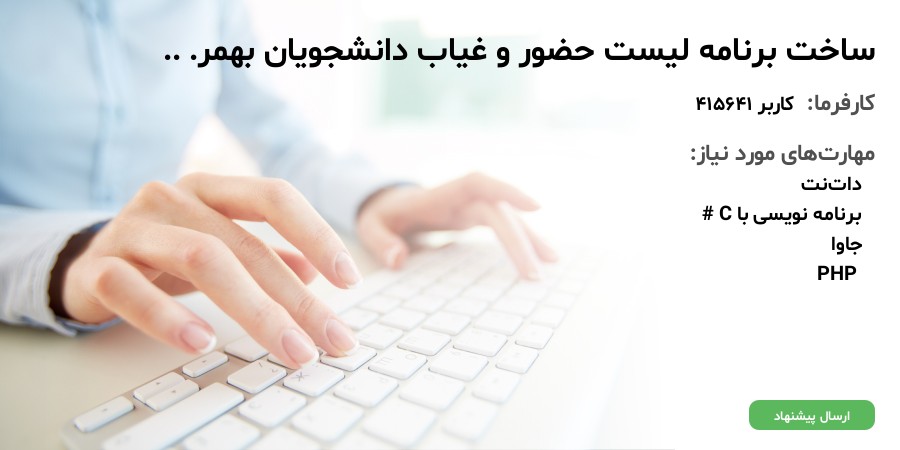 متأسفانه مهلت ارسال پیشنهاد این پروژه به پایان رسیده و پروژه بسته شده است؛ اما فرصتهای متعددی در سایت موجود میباشد.