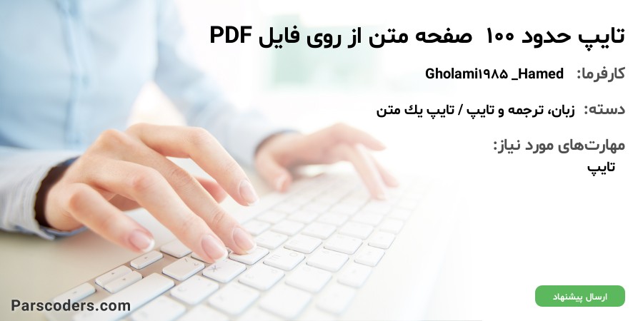 حدود 100 صفحه متن می باشد که قابل کپی - پیست هست. ولی باید بعد از تایپ یا کپی پیست مرتب بشه ( ترازبندی درست، جداول تایپ بشن، پاورقی ها تنظیم و تایپ بشن و ...) در نهایت یه فایل ورد دقیقا مانند فایل اصلی باید تحویل بنده داده بشه.