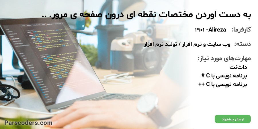 برنامه ای نیاز دارم که با کلیک بر روی نقطه ای درون صفحه ی مرورگر مختصات (طول و عرض ) نقطه رو درون متغیرهایی ذخیره کنه و مقادیر ذخیره شده رو درون فیلدهایی مجزا نمایش بده