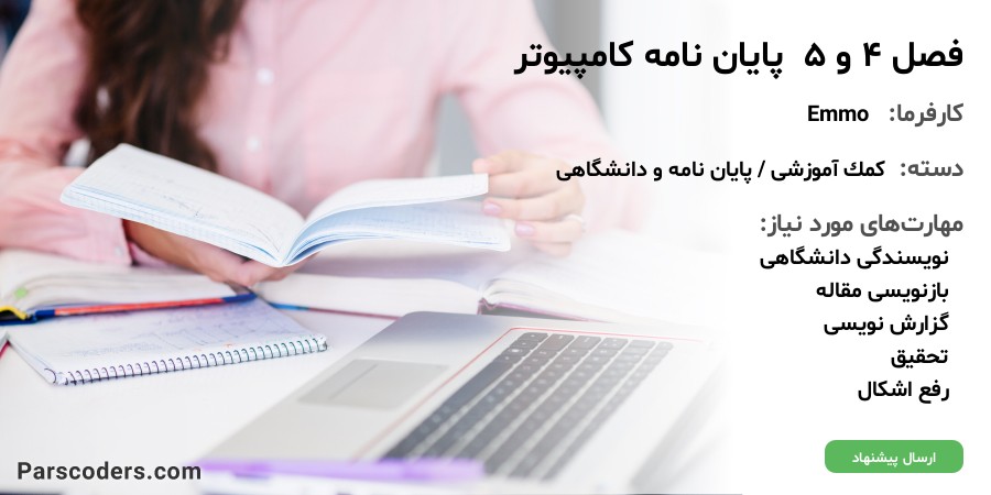 نگارش فصلهای 4و 5 پایان نامه کامپیوتر . با ارسال کد و داده های پژوهش