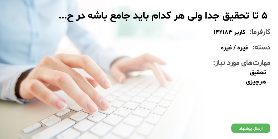 5 تا تحقیق جدا ولی هر کدام باید جامع باشه در حدی که می تونید اطلاعات جمع آوری کنید