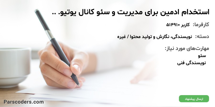 ما به دنبال یک دستیار باانگیزه و خلاق برای مدیریت حرفهای کانال یوتیوب خود هستیم. اگر تجربهی کار با یوتیوب دارید، خوشحال میشویم شما را در تیم خود داشته باشیم.موضوع کانال یوتیوب ما تدریس بازارهای مالی است.