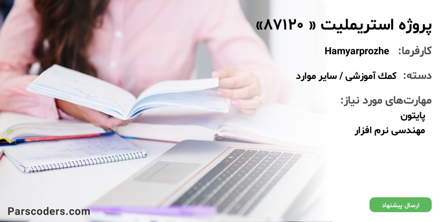 متأسفانه مهلت ارسال پیشنهاد این پروژه به پایان رسیده و پروژه بسته شده است؛ اما فرصتهای متعددی در سایت موجود میباشد.