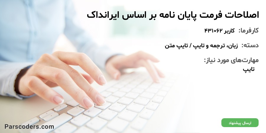 سلام پایان نامه ای دارم که نیاز به اصلاحات پارسا و مناسب سایت ایرانداک باشد.