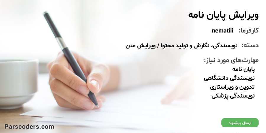 پروژه پایان نامه علوم پزشکی است که جهت تطبیق با فرمت نگارش اصلی و بخصوص رعایت فواصل و هدینگ ها احتیاج به بازنگری دارد حداکثر 5 روز بیشتر مهلت ندارد و در صورت رضایت امکان افزایش قیمت هم وجود دارد