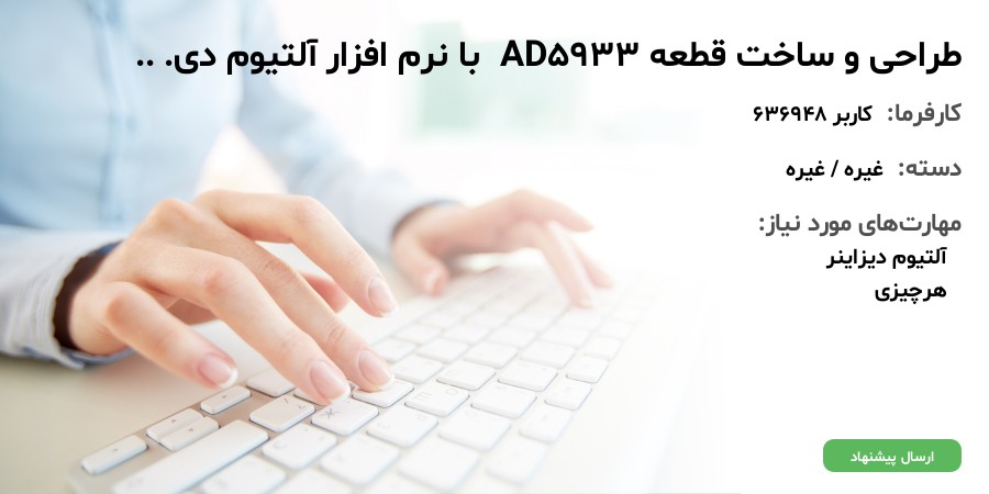 من میخوام که قطعه AD5933 رو تو آلتیوم دیزاینر طراحی کنید و فقط همین که اونو برا چاپ بفرستم تا بتونم تو برد بورد ازش استفاده کنیم چون قطعه من SMD هستش نمیتونم تو برد بورد ازش استفاده کنم میخوام تو آلتیوم بزنیم تا مداروشو چاپ کنیم و با اتصال پین هدر بتونم ازش تو برد بورد استفاده کنیم.