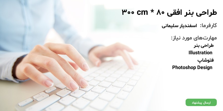 از دوستان گرامی اگر کسی میتواند یک بنر کاملا فول حرفه ای ، با رعایت رنگ بندی بصورت کامل و اصولی طراحی کند که قابل چاپ باشد پیشنهاد خود را ارسال نمایند.
