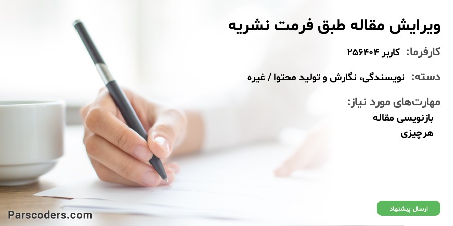 متأسفانه مهلت ارسال پیشنهاد این پروژه به پایان رسیده و پروژه بسته شده است؛ اما فرصتهای متعددی در سایت موجود میباشد.