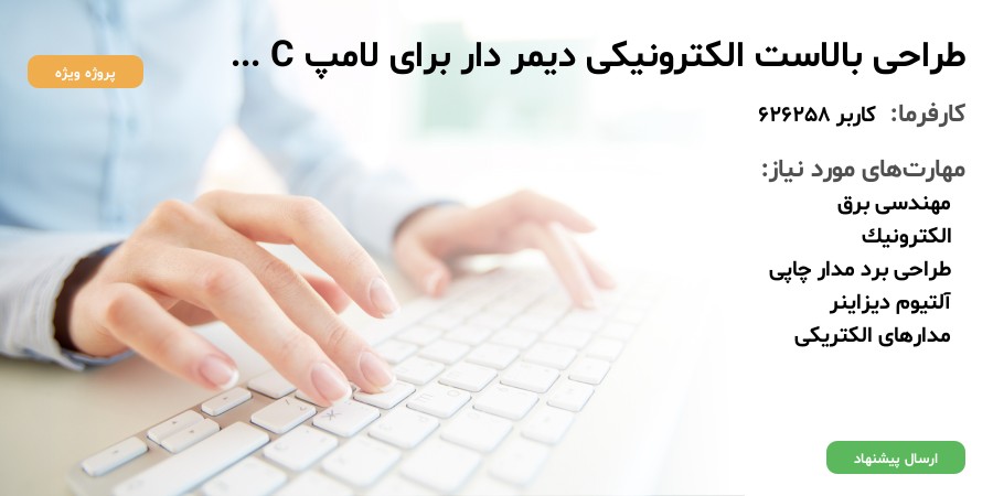 طراحی یک بورد الکترونیکی برای دو عدد لامپ یووی 5 واتی به صورتی که بتواند دیمردار کار کند. مشخصات دقیق تر در فایل پیوست آمده است. لطفا قبل از ارسال پیشنهاد این فایل را کاملا مطالعه کنید و دیتاشیت لامپ و آی سی مربوط را از اینترنت گرفته و بررسی کنید. همچنین توجه کنید طراحی این بورد نیاز به محاسبات قطعات پسیو از جمله سلف دارد. در صورت تجربه در طراحی بوردهای آنالوگ می توانید پیشنهاد دهید.
