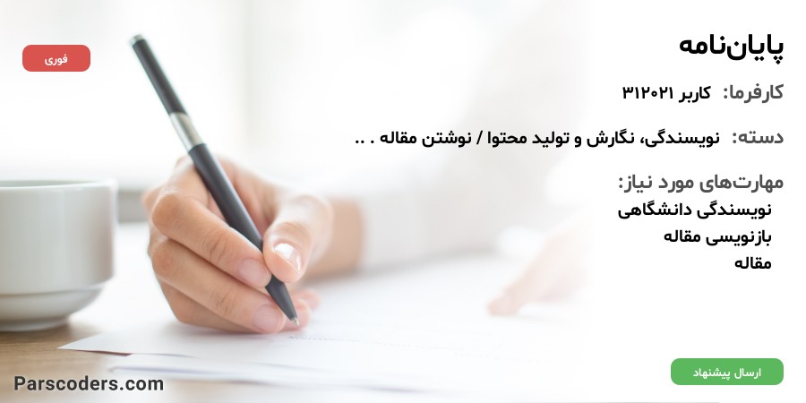 متأسفانه مهلت ارسال پیشنهاد این پروژه به پایان رسیده و پروژه بسته شده است؛ اما فرصتهای متعددی در سایت موجود میباشد.