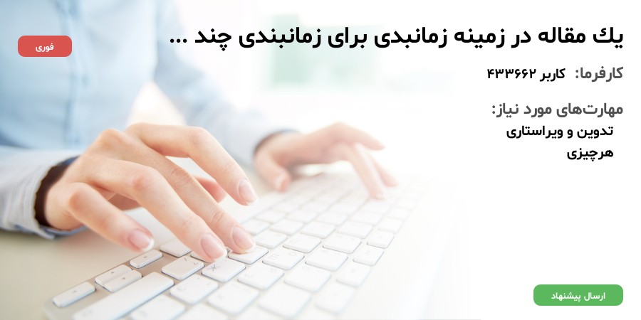متأسفانه مهلت ارسال پیشنهاد این پروژه به پایان رسیده و پروژه بسته شده است؛ اما فرصتهای متعددی در سایت موجود میباشد.