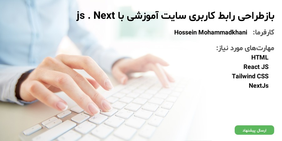 مهارت های مورد نیاز: تسلط کافی بر روی Next ، React و ابزارو کتابخانه های مربوطه مثل Tailwind CSS - درک کامل معماری های SSR , SSG , CSR - تجربه ی کار با تکست ادیتور ها و ابزار های WYSIWYG - تجربه ی کار با RESTful API - تجربه ی کار با موتور قالب ejs مزیت محسوب میشود
