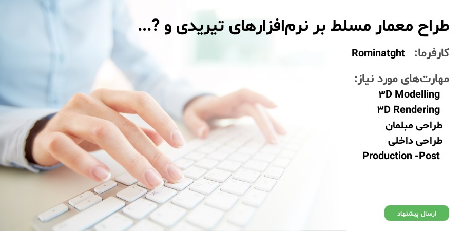 شرکت ما در راستای توسعه تیم طراحی خود، در جستجوی یک طراح داخلی فریلنسر با تسلط کامل بر مدلسازی سهبعدی و رندرینگ جهت همکاری در پروژههای طراحی داخلی فضاهای مسکونی و تجاری میباشد. از متقاضیان محترم خواهشمند است نمونهکارهای مرتبط و شرح مختصری از تخصصها و نرمافزارهای مورد استفاده خود را ارسال فرمایند.