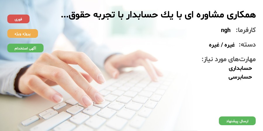 جهت یک پروژه مشاوره ای درصدد همکاری با یک حسابدار با تجربه حقوق و دستمزد هستیم.