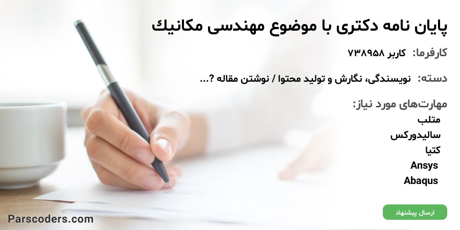 نیازمند پایان نامه دکتری با موضوع مهندسی مکانیک گرایش طراحی کاربردی ترجیحا کار با نرم افزار های ذکر شده