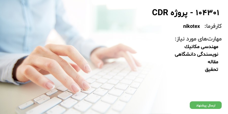 سلام وقت بخیر. من به دنبال CDR مهاجرتی هستم. شما میتونید کمکم کنید؟ رشته مهندسی صنایع. ۳ تا پروژه اجرایی باید توی یک کارخانه تولید جک های هیدرولیکی انجام بدم که مربوط به رشته ام باشه. موضوع اختیاری هست. نرم افزار اجباری نیست ولی محاسبه و فرمول داشته باشه باید به زبان انگلیسی باشه حتما یک سری فایل راهنما اگر بخواید براتون میفرستم که نحوه نوشتنش و چندتا نمونه کار داخلش هست زمان حدودا 1 ماه