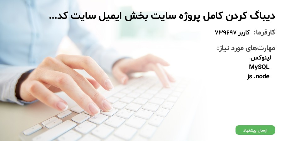 سلام وقتتون بخیر یک سایت داریم برنامه نویس هان عزیز حواستون باشه بک اند با node js باید که اول از همه بخش سرویس پیامکی ایمیل رو برررسی بکنید و اینکه باید کاری بکنید که وقتی طرف روی ثبت نام میزنه توی همون اول باید کد به ایمیل اش ارسال بشه توجه کنید به نکات زیر 1 - سایت سرورش و دامنه اش از سایت خارجی خریداری شده 2 - باید بعد از اینکه سورس رو درست کردید و ایمیل پیامک اومد یعنی کد تایید باید که دیباگ بشه سورس ببینیم جایی مشکلی داره یا نه 3 - توجه کنید افرادی که با سرور و node js کار کردند پیغام بدند در غیر این صورت پذیرفته نمیشه 4 - حداقل یک نمونه کار سرور و یا node js داشت باشید توی حساب کارلنسرتون که پذیرفته بشید 5 - هزینه برای پروژه ما 800.000 هزار تومان گذاشتیم ولی کسی که با دقت بالا انجام بده و مشکلی نداشت باشه همه چیزش یک حقوقی به عنوان انعام بیشتر بهش تعلق میگره و اینکه در قسمت های بعدی پروژه هم باهاشون همکاری میکنیم 6 باید توجه کنید بایدسورس روی سرور من اجرا بشه با دقت و بدون مشکل و اینکه توجه کنید خودتون باید برید توی سایت خارجی برای من ایمیل بیزنیسی این چیزا بگیرید توجه کنید که سایت هست من یوزنیم پسورد سایت های که دامنه سرور اینا دادم باید برید از اونجا ایمیل هر چیزی که لازم هست باید بگیرید و باید خروجی رو با دقت اجرا بکنید