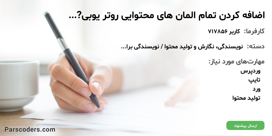 تا کنون 1 پیشنهاد قیمت از سمت فریلنسرها برای این پروژه ارسال شده