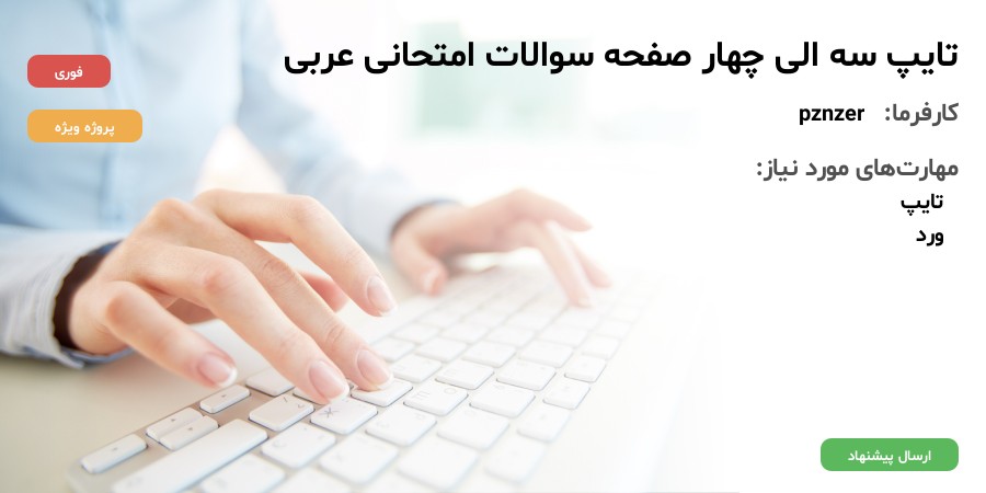 تایپ فوری سه الی چهار صفحه سوالات امتحانی عربی با سر برگ تا آخر شب