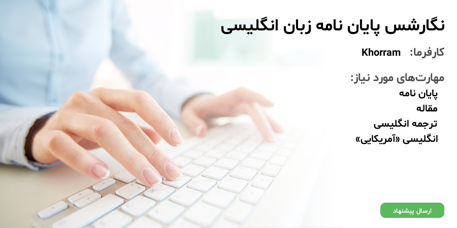 سلام وقتتون بخیر من یک پایان نامه به زبان انگلیسی دارم که میخوام بصورت کامل نگارش پایان نامه رو انجام بدید فرصت هم 20 روز برای همین بصورت کامل و دقیق و در چهارچوب پایان نامه تایید شده میخوام لطفا کسانی که میتوننند انجام بدن پیشنهادبدن چون فرصتی برای تغییر مجری یا اصلاحات ندارم