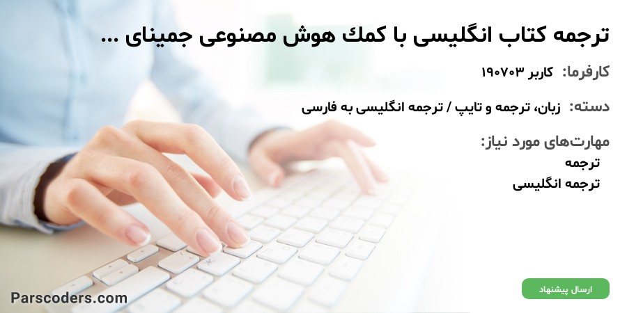 ترجمه فصل 19 کتاب مورد نظر است که باید با هوش منوعی جمینای انجام شود. هزینه انجام کار 150 هزار تومان می باشد و مهلت تحویل 5 روز