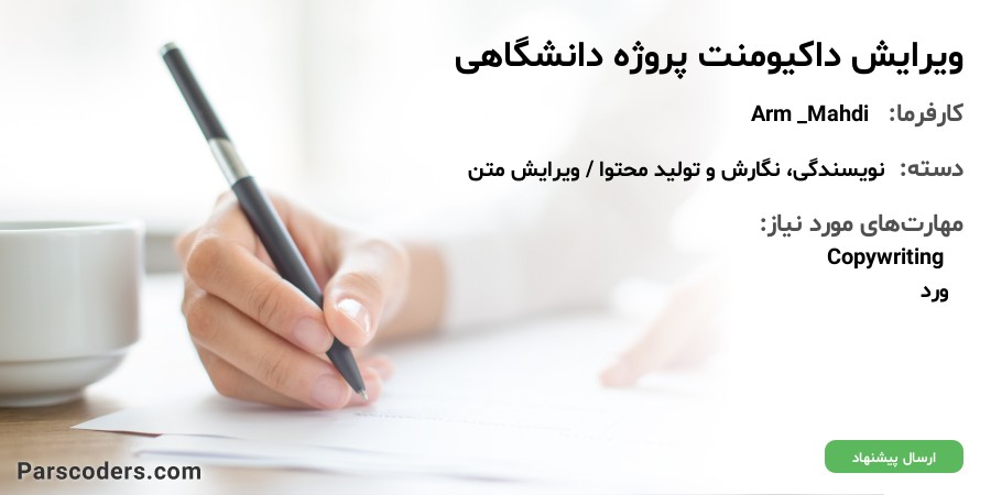 متأسفانه مهلت ارسال پیشنهاد این پروژه به پایان رسیده و پروژه بسته شده است؛ اما فرصتهای متعددی در سایت موجود میباشد.