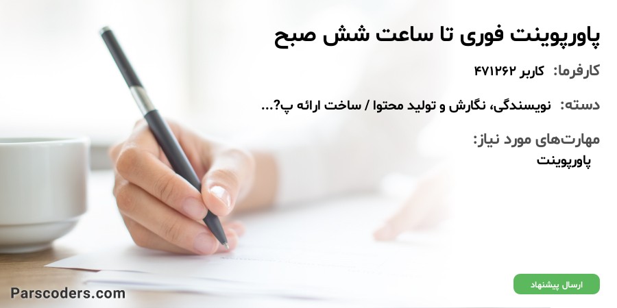 تا کنون 5 پیشنهاد قیمت از سمت فریلنسرها برای این پروژه ارسال شده