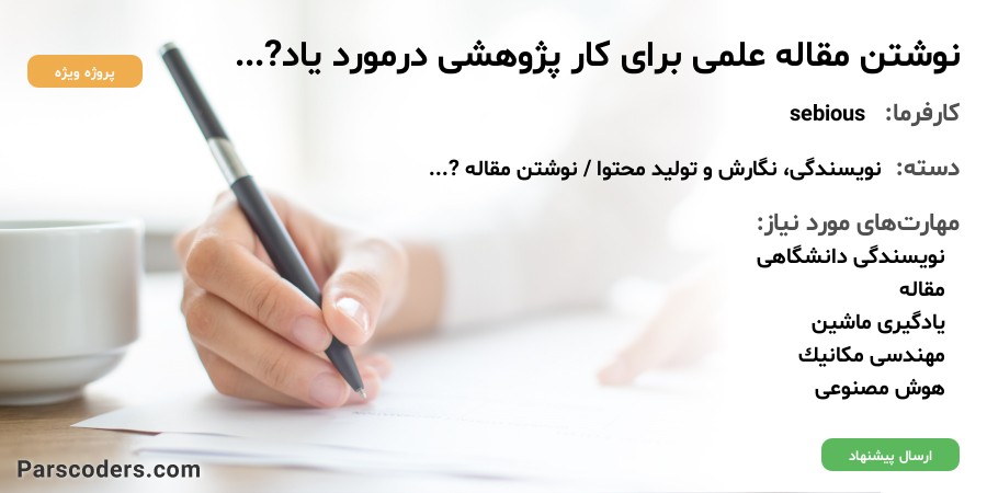 درود. من مهندس مکانیک هستم و پروژه ای انجام دادم که در آن از ابزار یادگیری ماشین (macine learning) و شبکه های عصبی به منظور پیشبینی عمر قطعات استفاده کردم. کارهای عملی انجام شده و الان فقط نوشتن مقاله و کارهای نوشتاری مانده. نیاز دارم که شخصی با تسلط در حوزه ماشین لرنینگ و تا حدودی مسائل مهندسی کار نوشتن این مقاله را بر عهده بگیرد. تا پایان اسفند 1404 مهلت دارم. در این راه خودم هم کمک میکنم.