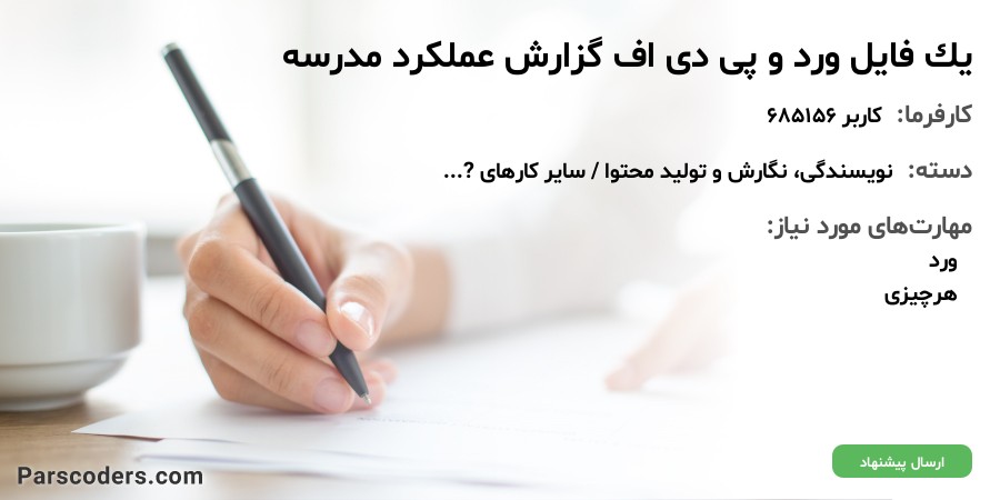 باسلام یک گزارش عملکرد برای مدرسه می ام و اینکه متنش رو آماده دارم فقط میخوام بهم به صورت پی دی اف تحویل، بدین تاساعت 11 امروز میخوام