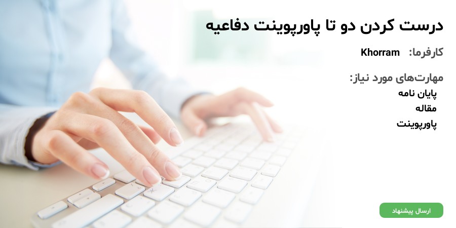 سلام وقتتون بخیر من دو تا پایان نامه دارم که استاد تایید کردن و گفتن پاورپوینت های دفاعیه ها رو هم درست کنید و بهم ارسال کنید الان شما میتونید انجام بدید دقیق میخوام استاد سخت گیر هستن و باید دقیق انجام بشه مثل پایان نامه چک میکنند