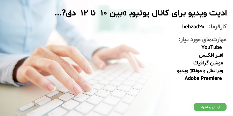 نیازمند ادیتوری هستم که مسلط به پریمیر و افترافکت باشه و با قوانین یوتیوب آشنایی کامل داشته و سابقه ادیت برای کانال های یوتیوبی هم داشته باشد(بهتره نمونه کار هم در این زمینه داشته باشه)