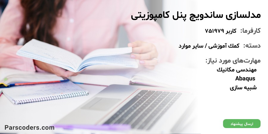 مدلسازی یک ساندویچ پنل کامپوزیتی با بارگذاری یکنواخت و با شرایط مرزی ساده به روش خواص معادل در آباکوس برای محاسبه تنش ها، جابجایی و..پنل در برابر بارگذاری فشاری.